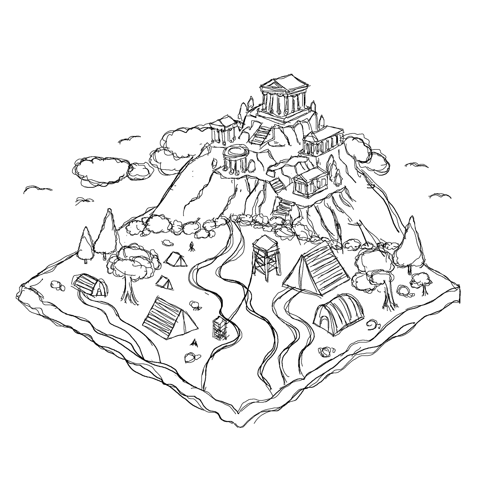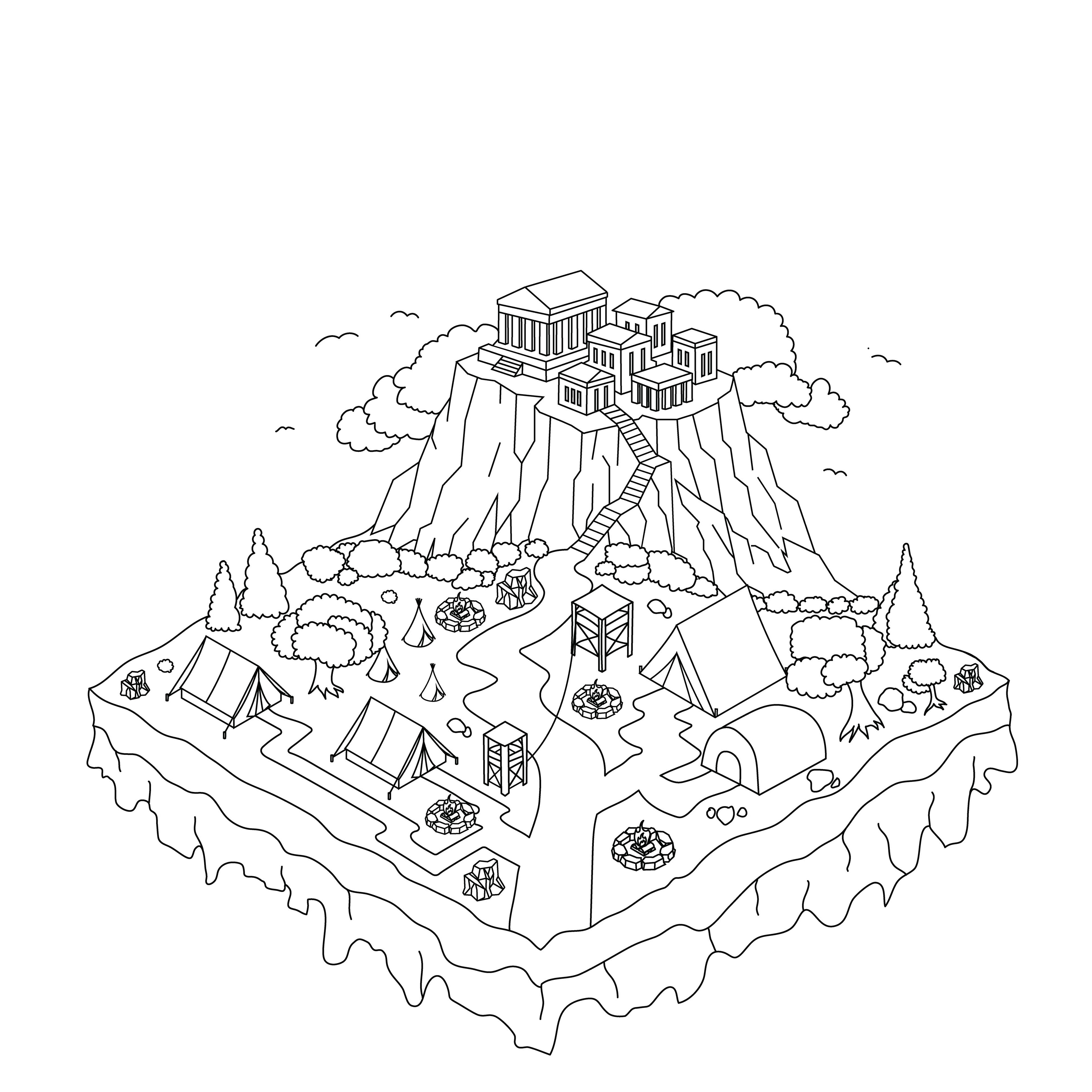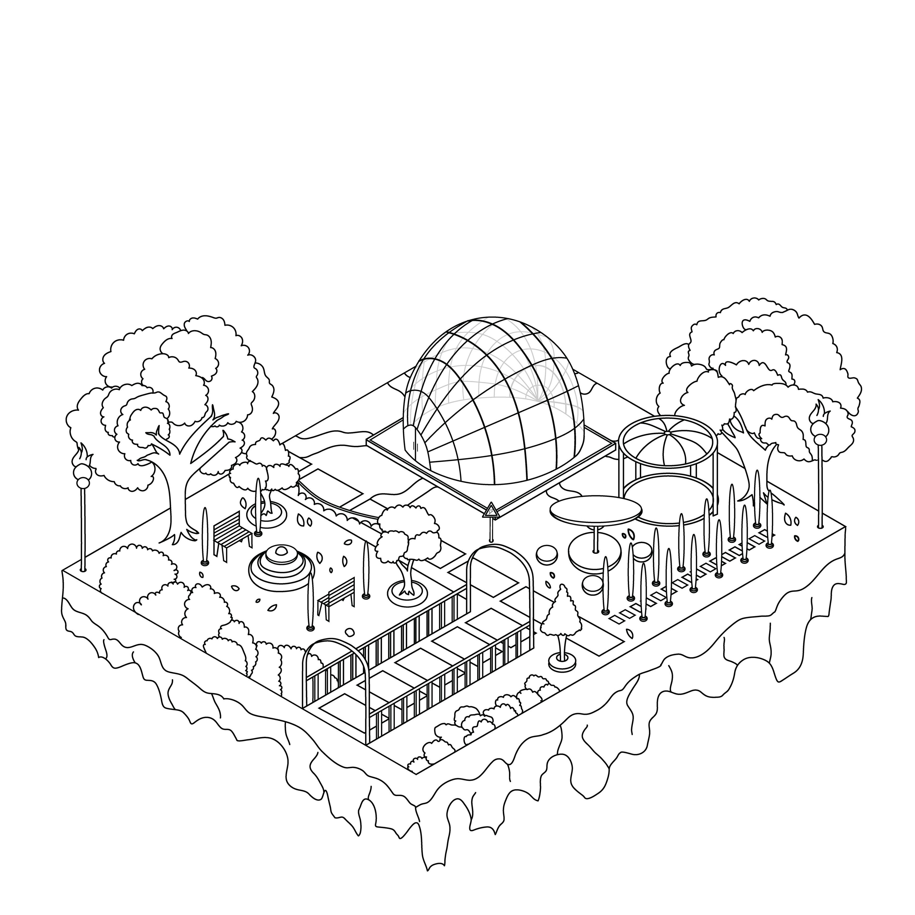 Below are the rough sketches of each geolocation shown in an isometric perspective, followed by clean lineart versions. Gradual changes were made throughout the process to achieve more refined and visually striking results.